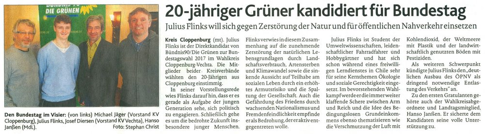 Julius Flinks will sich gegen Zerstörung der Natur und für öffentlichen Nahverkehr einsetzen