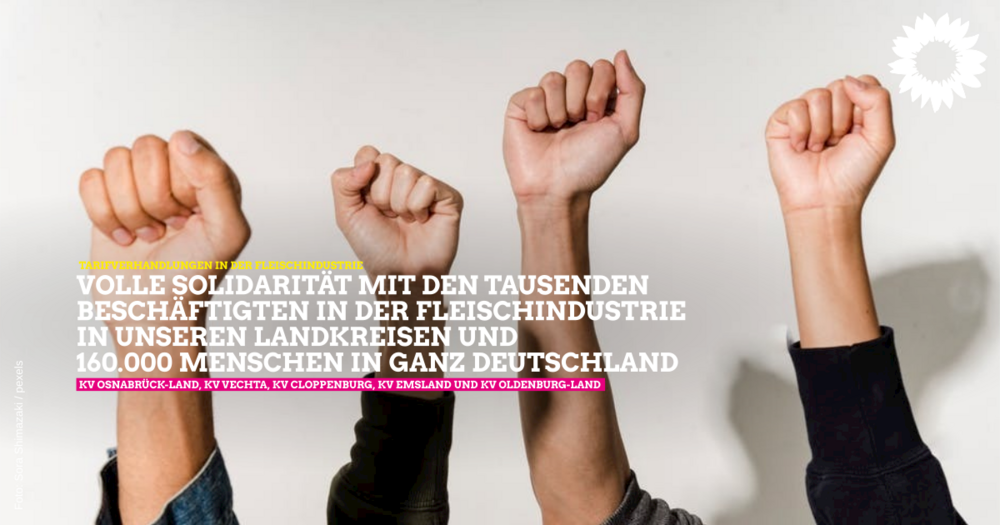 Wir GRÜNE in den Landkreisen im Nordwesten, die besonders von der industriellen Fleischwirtschaft betroffen sind, zeigen vollste Solidarität mit den Arbeiter*innen, die sich für gerechtere Löhne einsetzen.