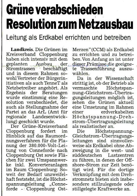Grüne verabschieden Resolution zum Netzausbau (CSB)