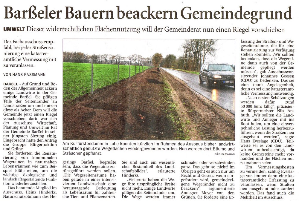 Barßeler Bauern beackern Gemeindegrund (GA)