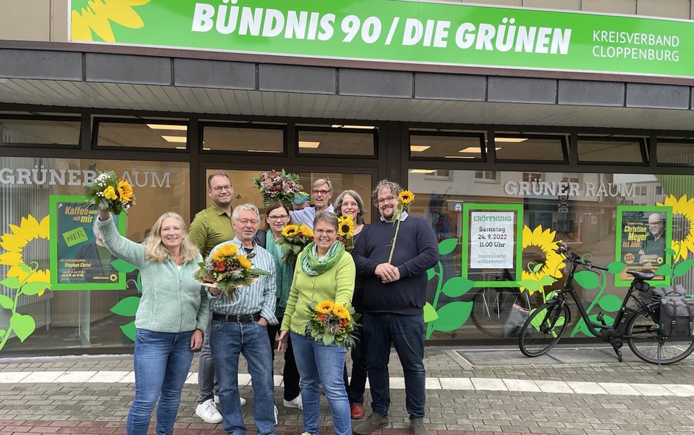 Wir Grünen im Kreis Cloppenburg geben uns selbstbewusst: „Hoffen wir, dass es von diesem Grünen Raum aus gelingt, irgendwann die schwarze Mehrheit zu brechen,“ so unser Kreisvorsitzender Marius Meyer, „selbst wenn es nochmal 40 Jahre brauchen sollte.“ Der „Grüne Raum“ ist die neue Kreisgeschäftsstelle der Grünen, die am vergangenen Samstag (24. 9.2022) in der Osterstraße 12 in Cloppenburg eröffnet wurde – mehr als 40 Jahre nach der Gründung der Grünen im Landkreis.