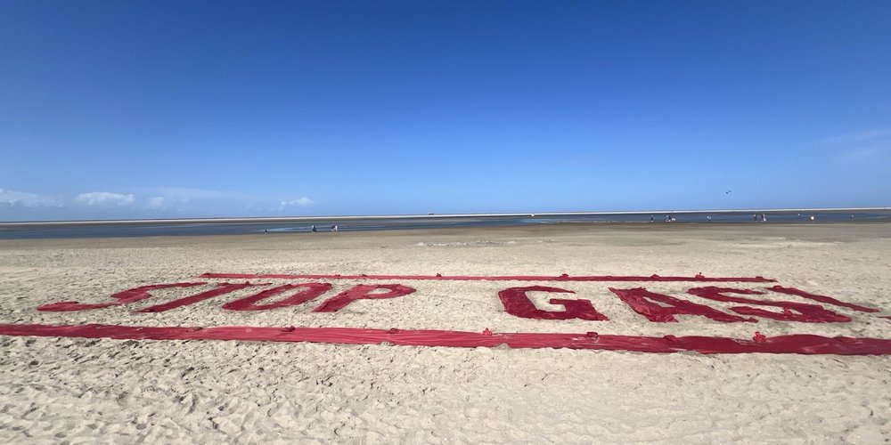 „Wir sagen Nein zu klimaschädlichen Gasbohrungen vor unserer Küste. Und wir sagen Nein zu einem Konzern, der schöne Worte nach außen trägt, aber Deals gegen die Zukunft unserer Region macht.“