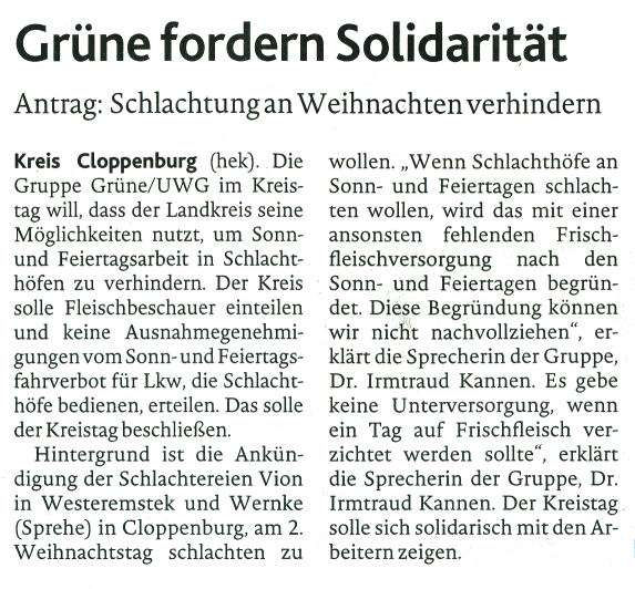 Antrag: Schlachtungen an Weihnachten verhindern