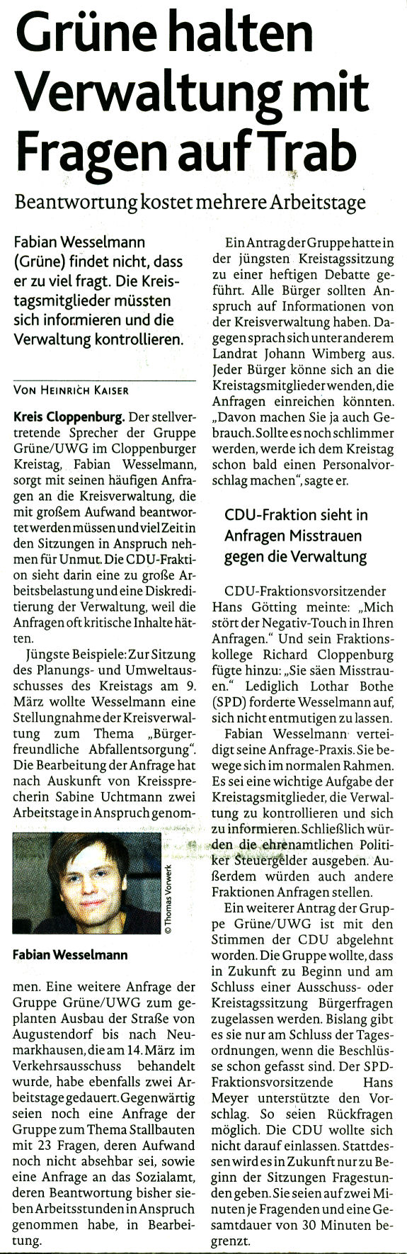 Grüne halten Verwaltung mit Fragen auf Trab (MT)