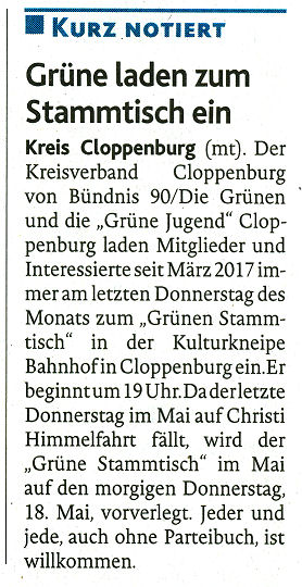 Grüne laden zum Stammtisch ein (MT)