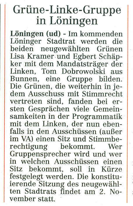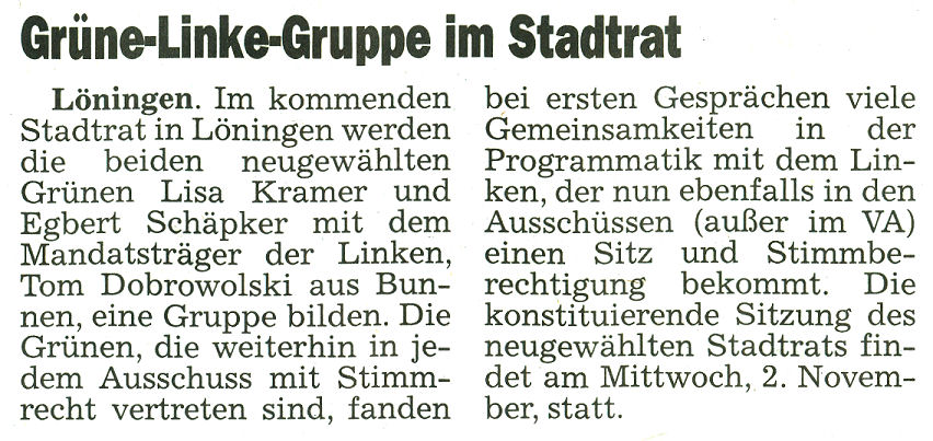Grüne und Linker bilden Gruppe im Löninger Stadtrat