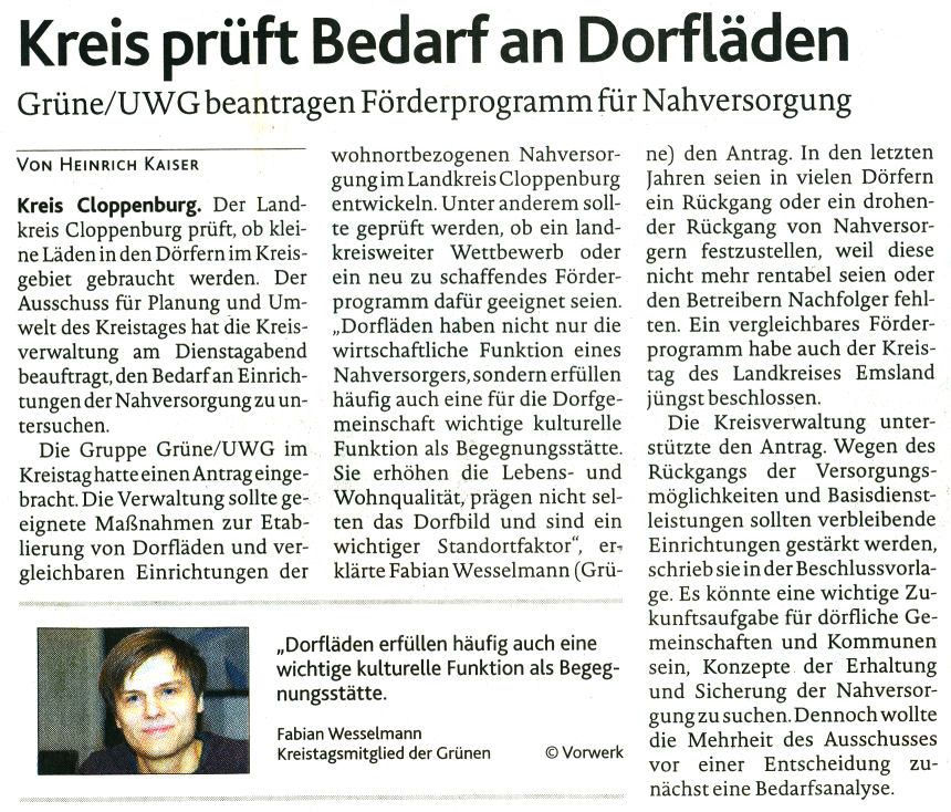 Grüne/UWG beantragen Förderprogramm für Nahversorgung