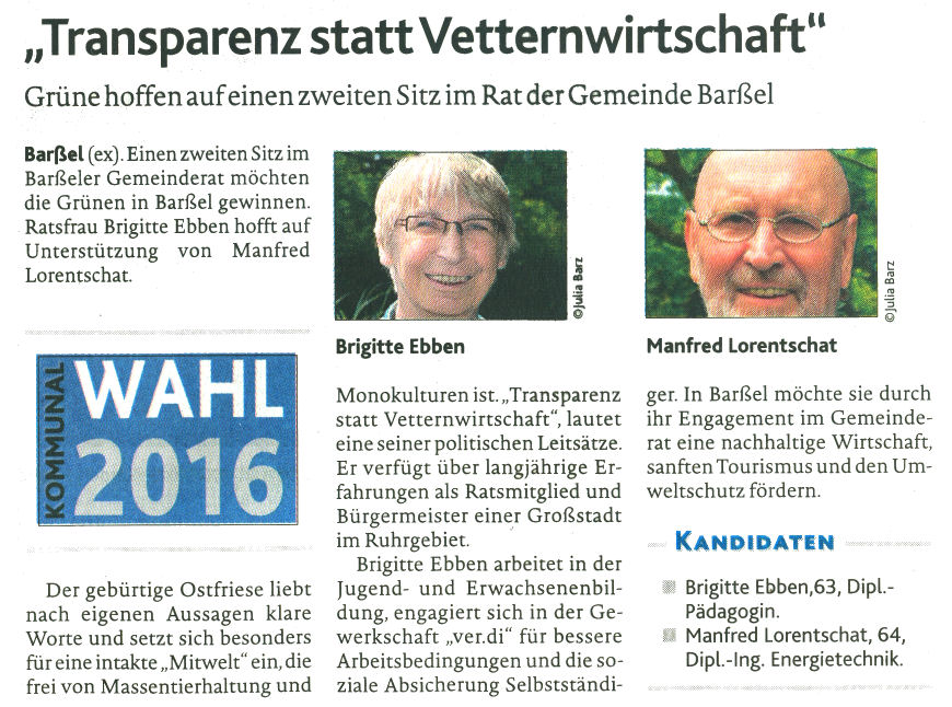 Grüne hoffen auf einen zweiten Sitz im Rat der Gemeinde Barßel