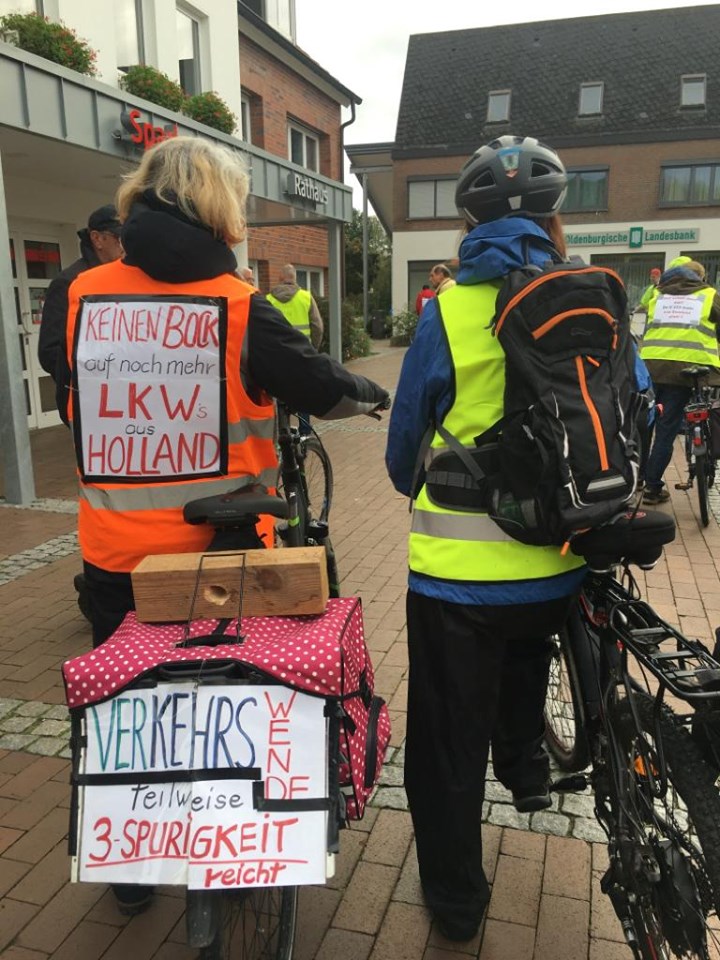 Zahlreiche Grüne sind Initiator*innen und Mitglied und im Vorstand der beiden Vereine aktiv. Sie sind maßgeblich am Widerstand beteiligt. Mit der Fahrrad-Sternfahrt von Meppen und Lastrup/Löningen nach Herzlake wurde der Protest auf die Straße gebracht. Bei der abschließenden Kundgebung wurde noch einmal kreativ deutlich gemacht, dass 17 Millionen Euro Planungskosten bereits von beiden Landkreisen unnötigerweise ausgegeben wurden anstatt dieses Geld in den Ausbau des öffentlichen Personennahverkehrs oder Bildung zu investieren.