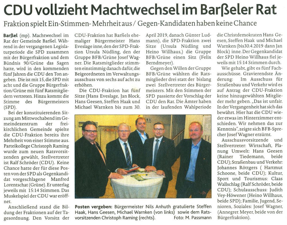 CDU vollzieht Machtwechsel im Barßeler Rat