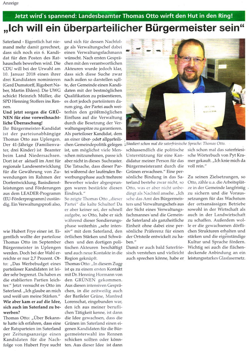 Jetzt wird's spannend: Landesbeamter Thomas Otto wirft den Hut in den Ring!