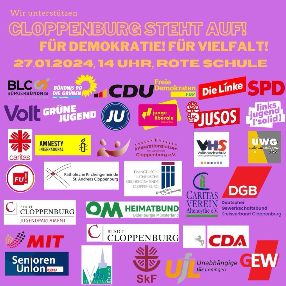 Cloppenburg steht auf! - Demo gegen Rechts am 27.01.2024