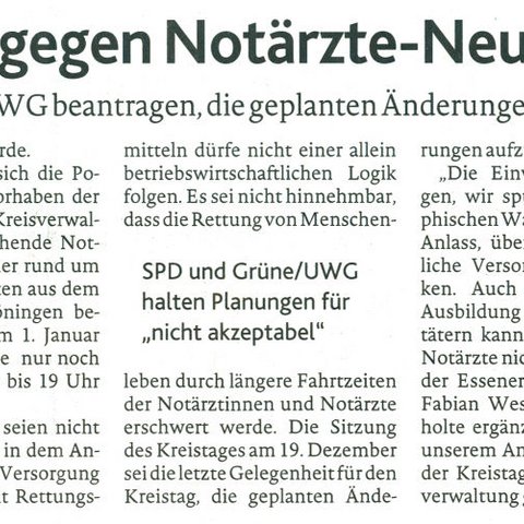 02.12.2017 - SPD-Fraktion und Gruppe Grüne/UWG beantragen, die geplanten Änderungen nicht umzusetzen