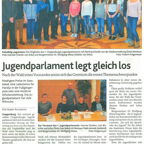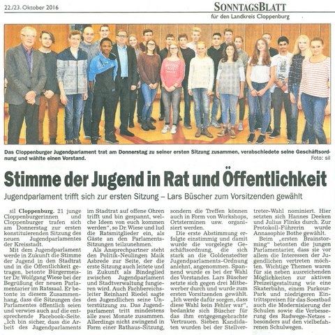 23.10.2016 - Jugendparlament trifft sich zur ersten Sitzung - Lars Büscher zum Vorsitzenden gewählt