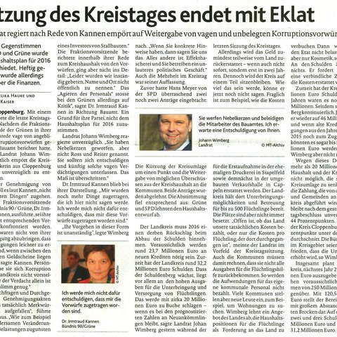 18.12.2015 - Landrat reagiert nach Rede von Kannen empört auf Weitergabe von vagen und unbelegten Korruptionsvorwürfen