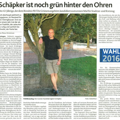 26.08.2016 - Der 42-Jährige, der dem Bündnis 90/Die Grünen angehört, kandidiert zum ersten Mal für Stadtrat und Kreistag