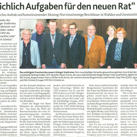 04.11.2016 - Harmonischer Auftakt auf konstituierender Sitzung: Nur einstimmige Beschlüsse in Wahlen und Gremienbildungen