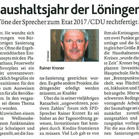 18.01.2017 - Viel Lob und nur milde kritische Töne der Sprecher zum Etat 2017 / CDU rechtfertigt Streichen der Saunasanierung