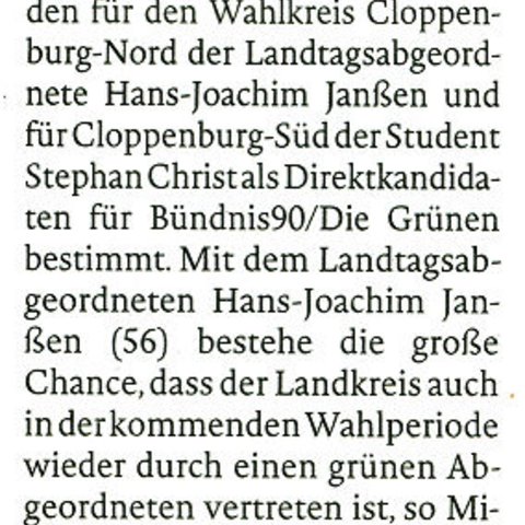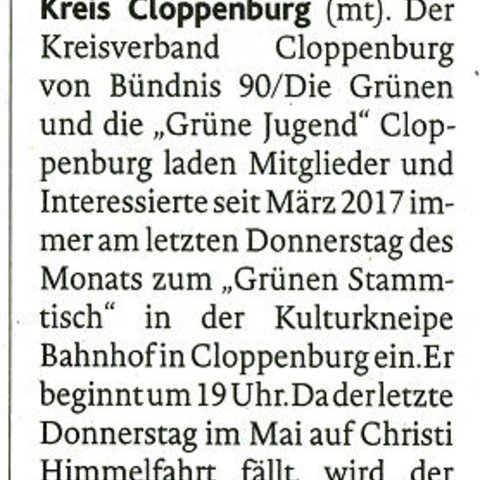 20.05.2017 - von Ulf Dunkel - PRESSEMITTEILUNG von Bündnis 90/Die Grünen, Kreisverband Cloppenburg