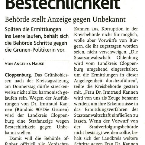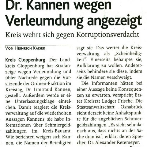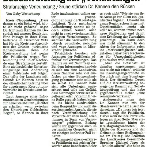 10.04.2016 - Strafanzeige Verleumdung / Grüne stärken Dr. Kannen den Rücken