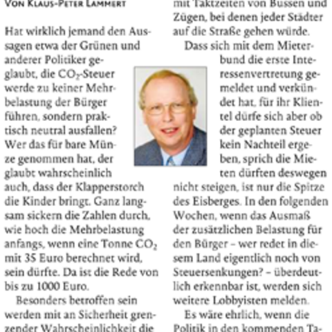 22.07.2019 - (MT 15.7.2019) Der nebenstehende Kommentar konnte nicht unwidersprochen bleiben. Michael Jäger hat geantwortet und die Sicht der Grünen auf die CO2-Bepreisung als wichtiges Instrument im Kampf gegen den Klimawandel herausgestellt. Hier die Antwort im Wortlaut: